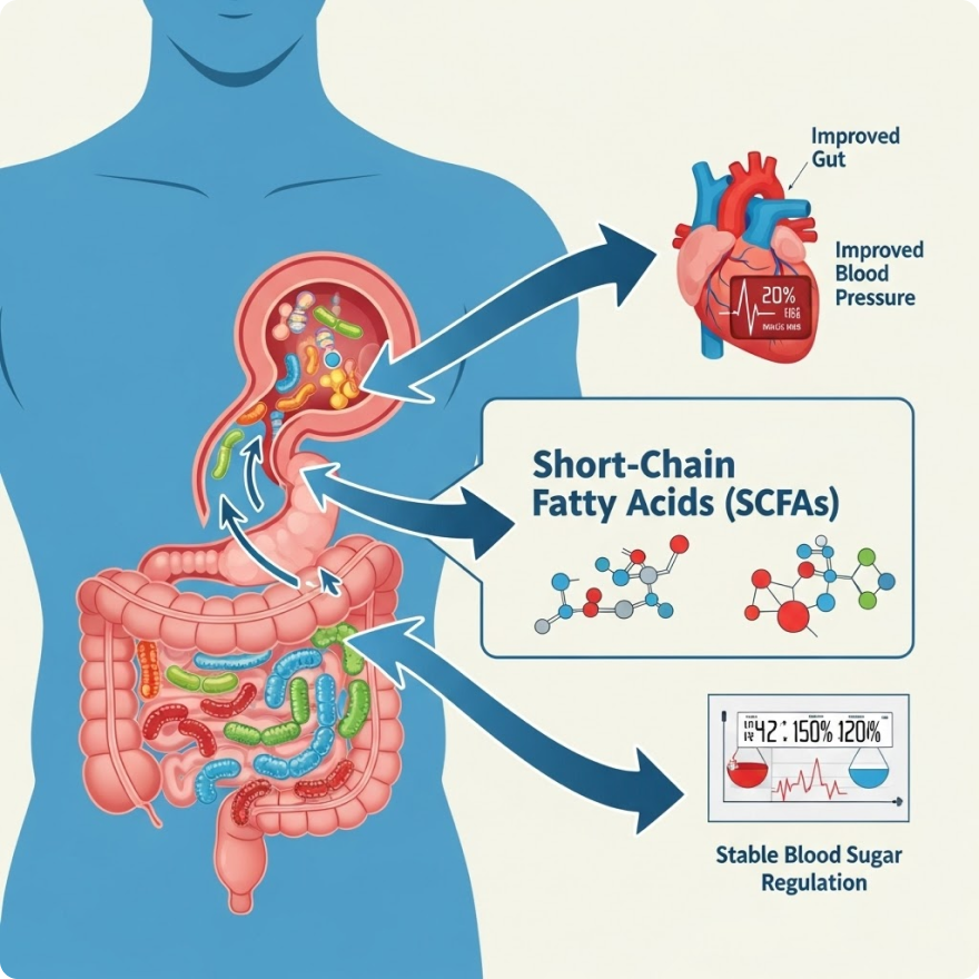 Your gut also has a powerful influence on cardiovascular health. The same short-chain fatty acids that help with blood sugar also work to reduce inflammation, supporting the healthy function of your arteries and blood vessels, which in turn promotes better blood pressure.